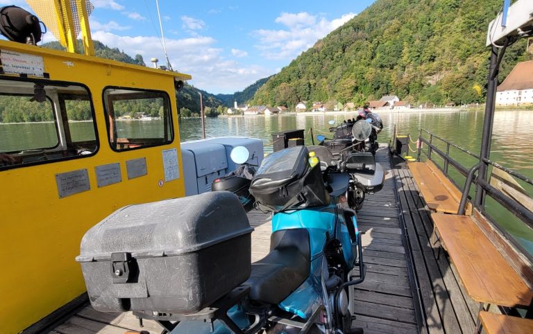Anschließend geht es weiter zur Schlögener Schlinge (15 Min Walk), die wir von der Aussichtsplattform aus bestaunen, bevor eine kurze Donaufähre uns ins Mühlviertel bringt. Dort erwarten uns historische Salzstraßen, perfekter Grip und kaum befahrene Kurven, die uns am späten Nachmittag direkt zu unserem Tagesziel führen.